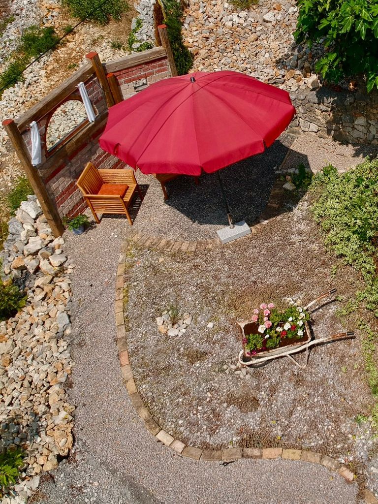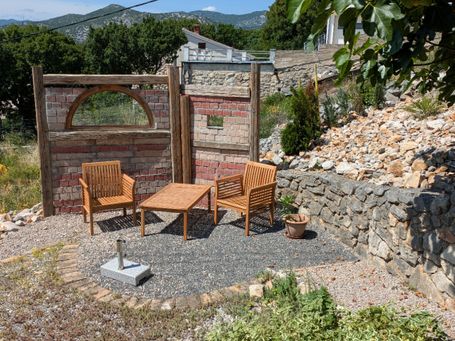 Auf der Westseite des Grundstücks - beim Schachfeld - ist ein neuer Sitzplatz angelegt worden, der ganz eigene Blickperspektiven gewährt.